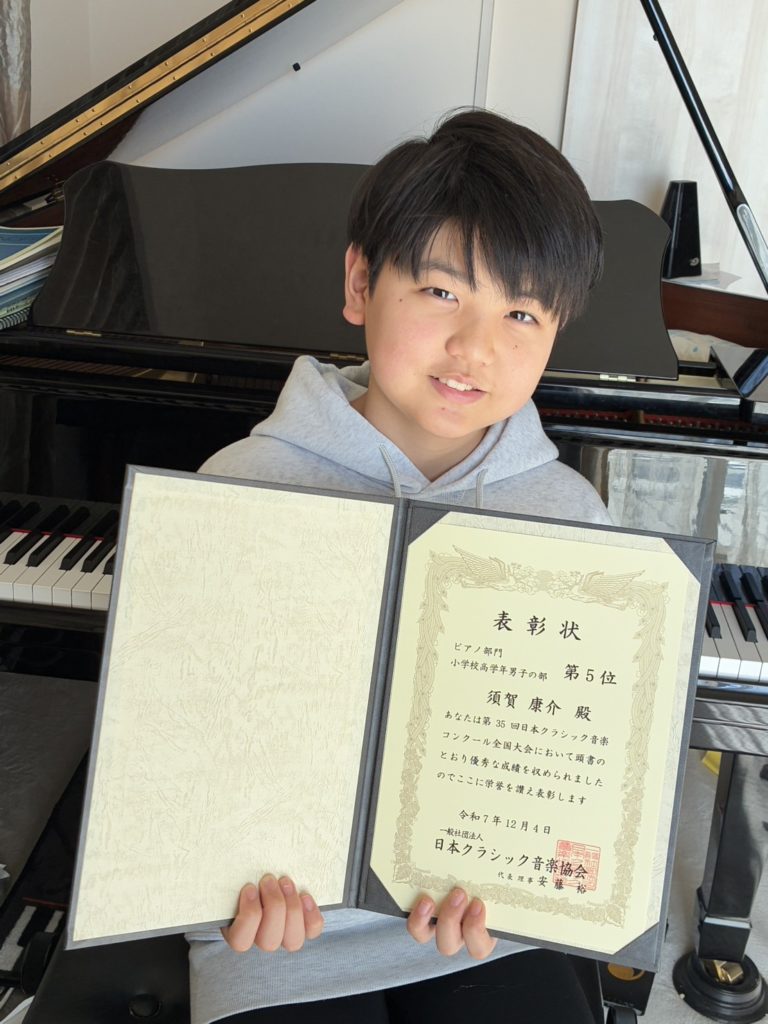 大阪音楽大学付属音楽院でレッスンを担当している生徒さん(須賀康介くん / 小学6年生)が昨年開催されたコンクールで多数入賞されました👏✨